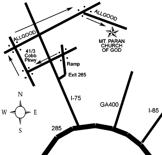 7. Mt. Paran will be on your RIGHT. The parking lot is huge. Make your